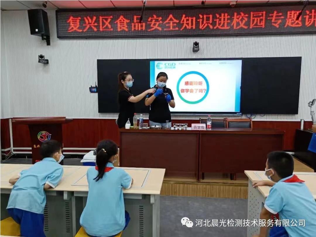 為進一步普及食品安全知識,增強學校師生的食品安全意識,9月13日-14日,河北晨光檢測技術(shù)服務有限公司配合邯鄲市市場監(jiān)管局和市食品藥品檢驗中心,分別走進開發(fā)區(qū)紫薇苑小學、叢臺區(qū)荀子實驗小學、邯山區(qū)七賢小學、復興區(qū)前進小學,開展食品安全進校園活動。
